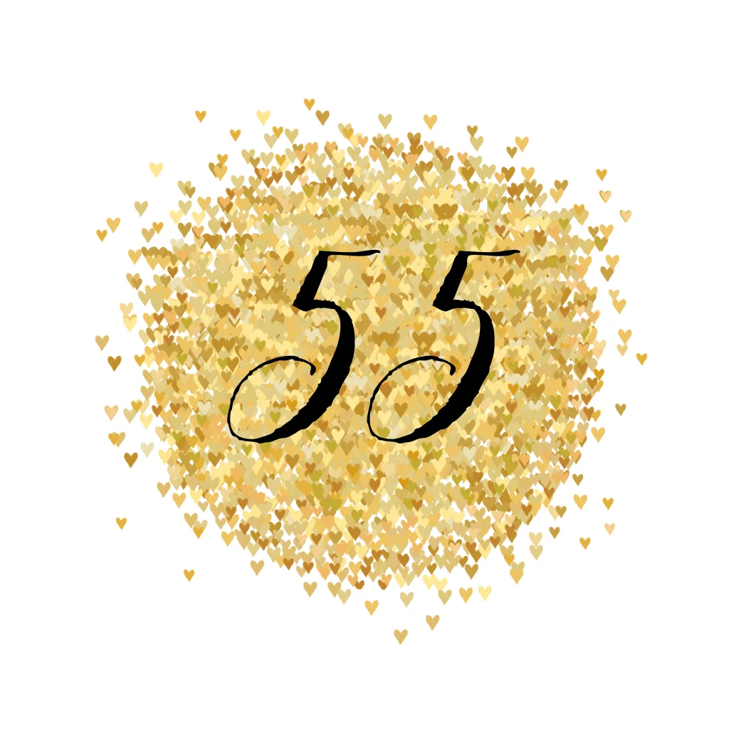 Chique uitnodiging feest 55 jaar met hartjes in goudkleur