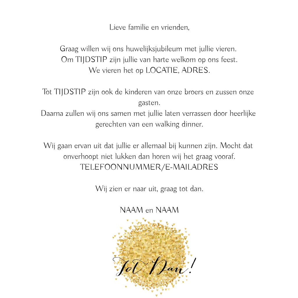 Chique trendy uitnodigingskaart feest met hartjes in goudkleur 55 jaar getrouwd. (3351)