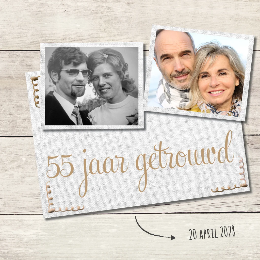 Foto collega uitnodiging feestje 55 jaar getrouwd met hout