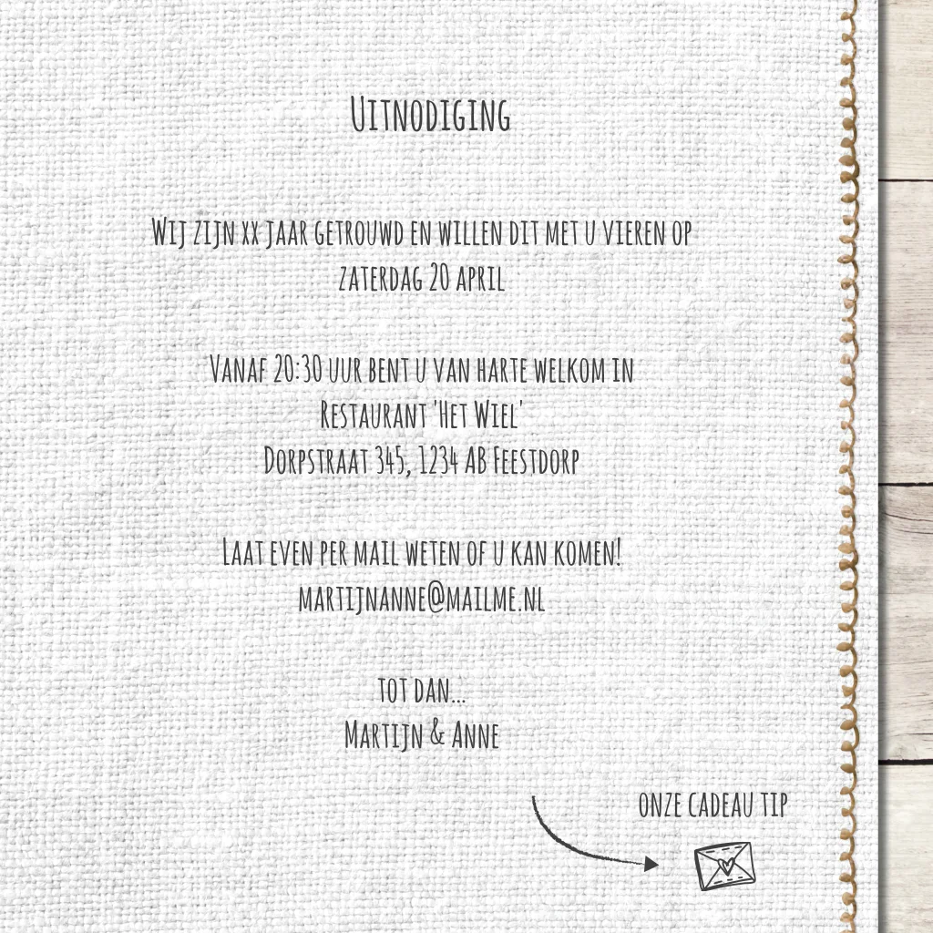 Hout uitnodiging feestje 55 jaar huwelijk. Met linnen stof label. (2073)
