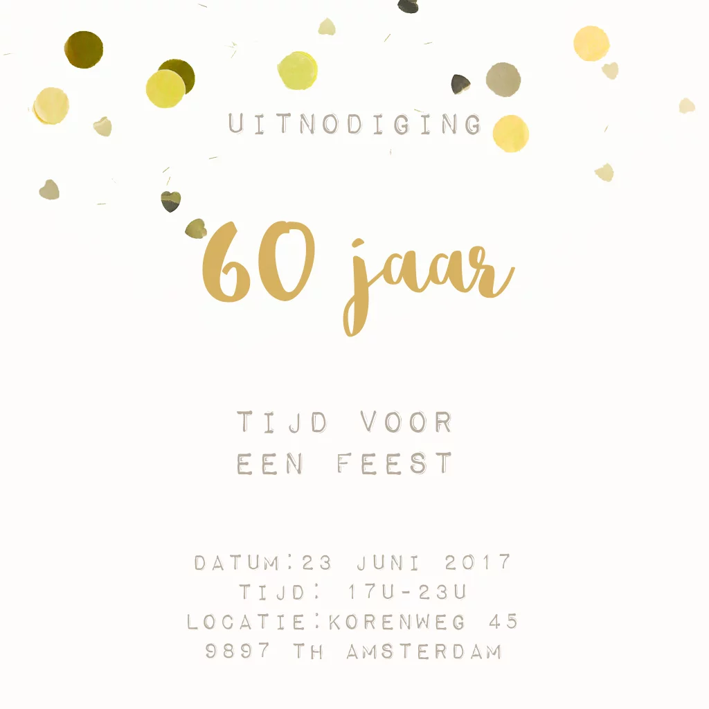 Uitnodiging voor een 55 jarig jubileum met goudkleurige confetti met de tekst in goudkleur. (5064) 55 jaar getrouwd