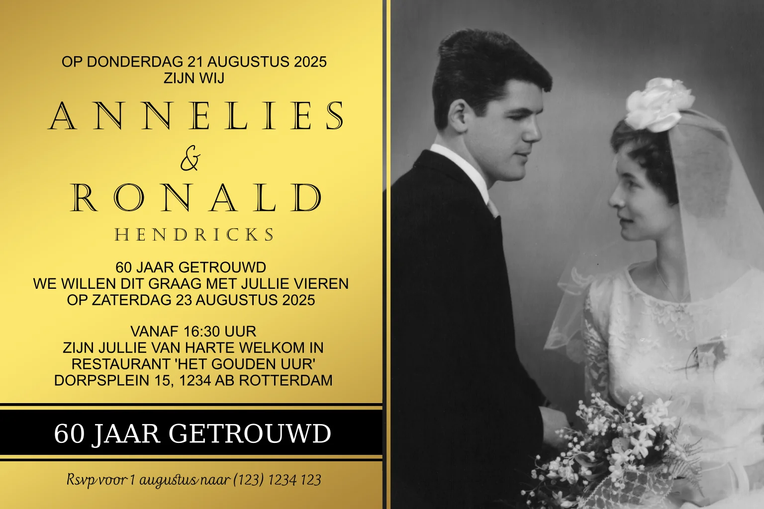 60 jaar getrouwd uitnodiging met eigen foto en goud