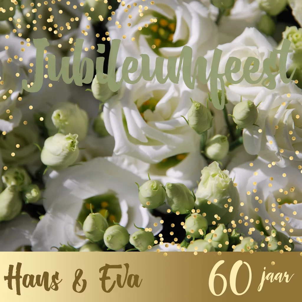 Uitnodiging 60 jarig jubileumfeest met prachtige bloemen groen en goud