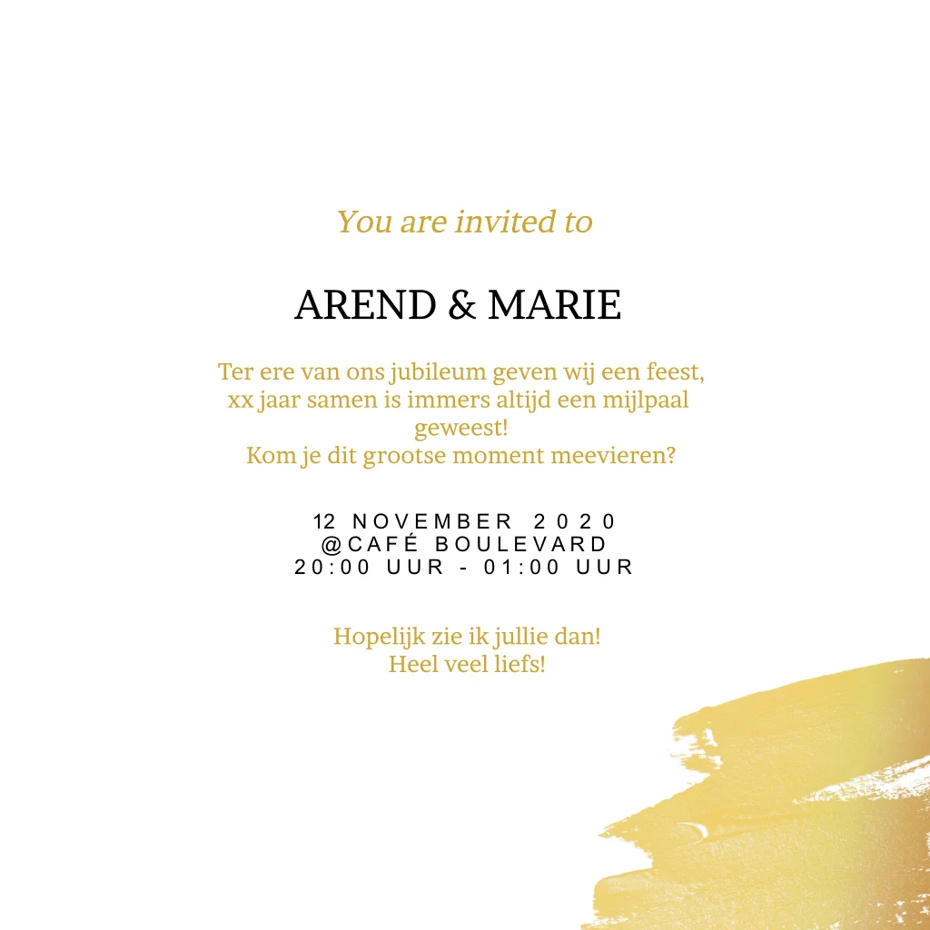 Vierkant jubileum uitnodiging goud en foto