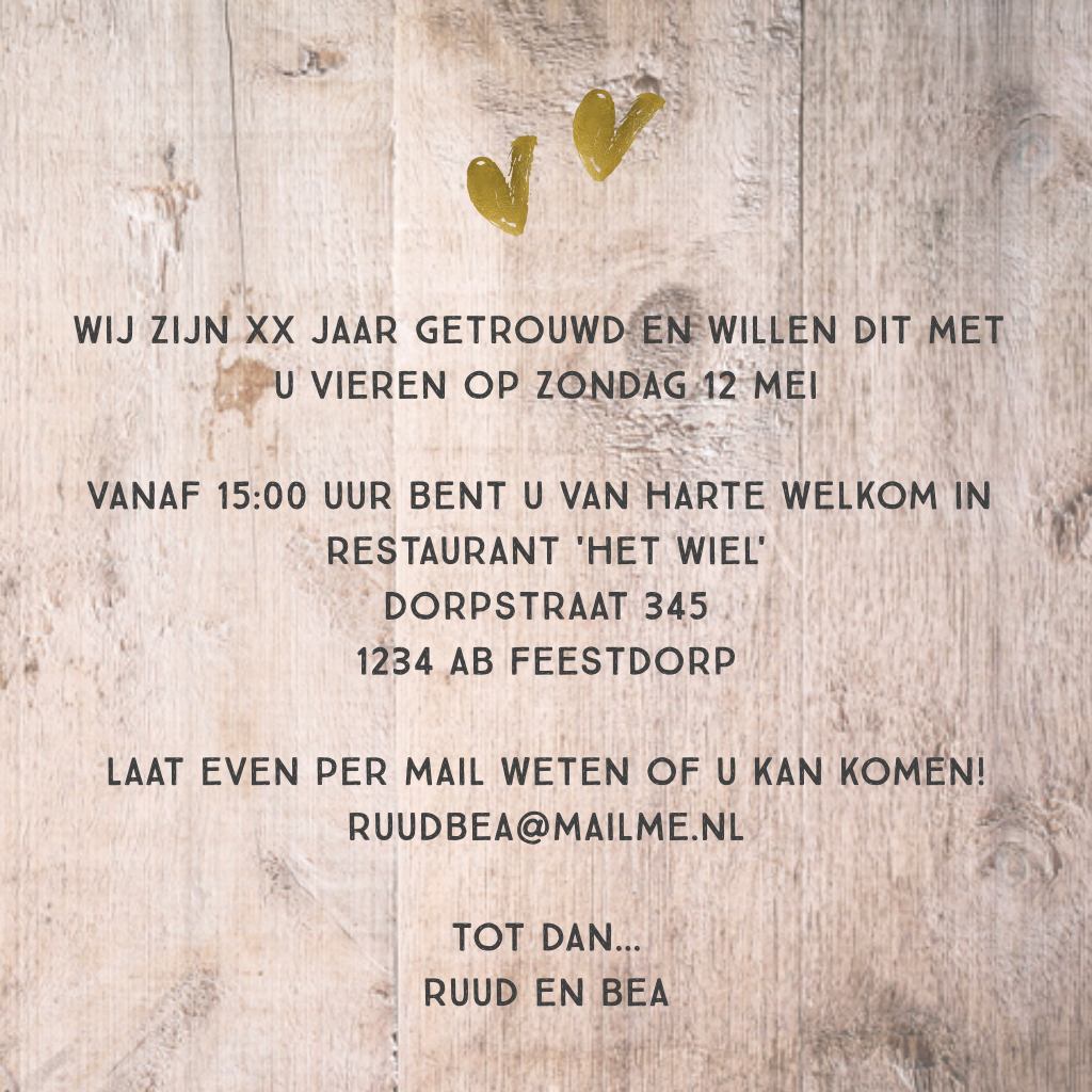 Jubileum uitnodiging 60 jaar getrouwd met hout