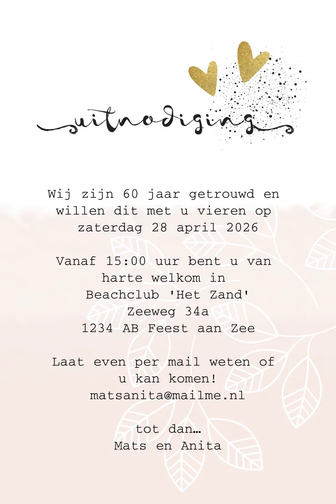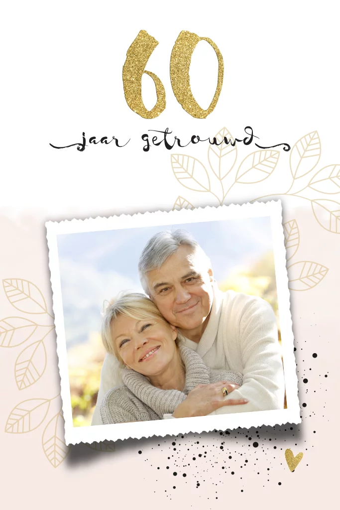 Stijlvolle uitnodiging 60 jaar met gouden glitter jaartal