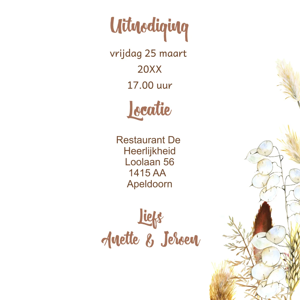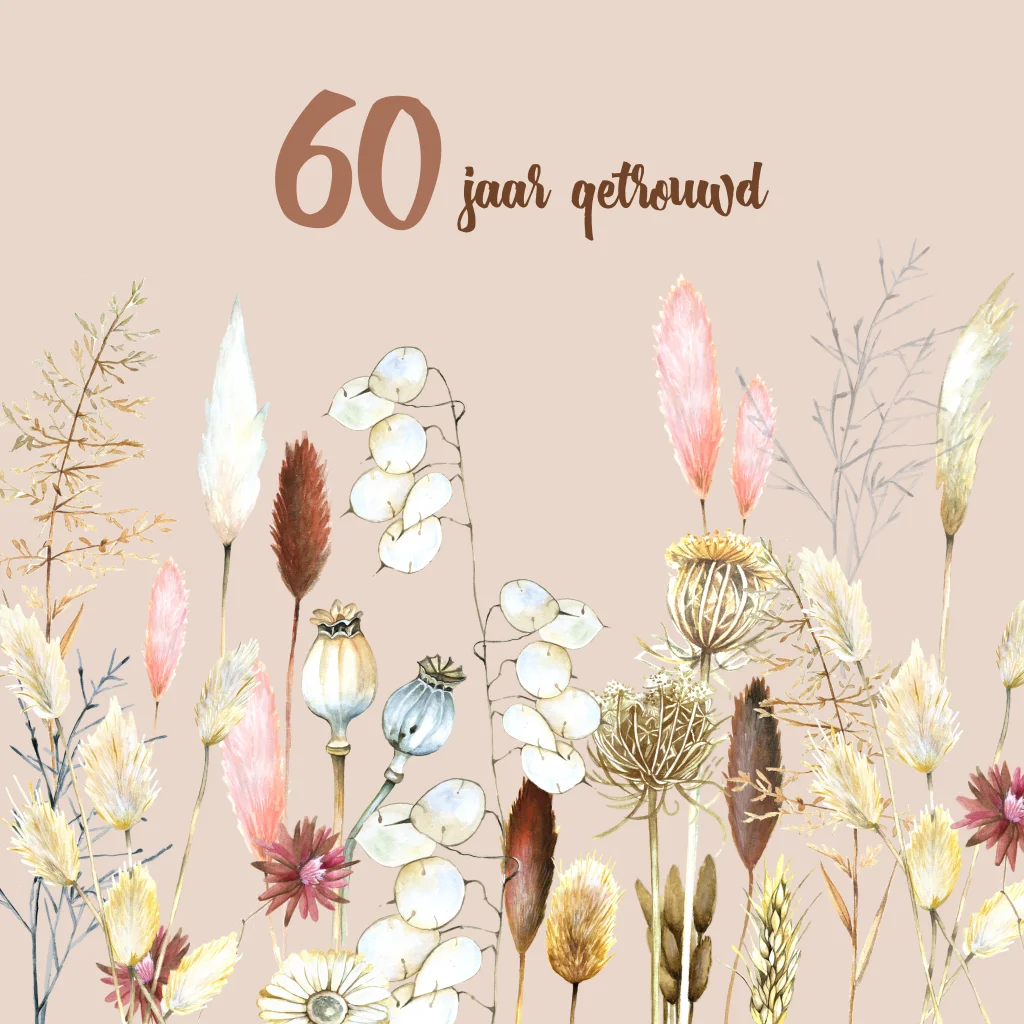 60 jaar getrouwd Uitnodiging huwelijksjubileum met mooie droogbloemen en pampagras. (20462)