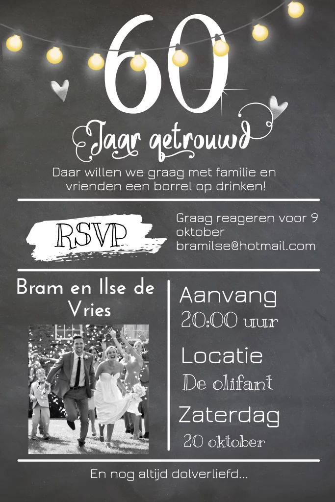 Uitnodiging 60 jaar getrouwd met foto en slinger