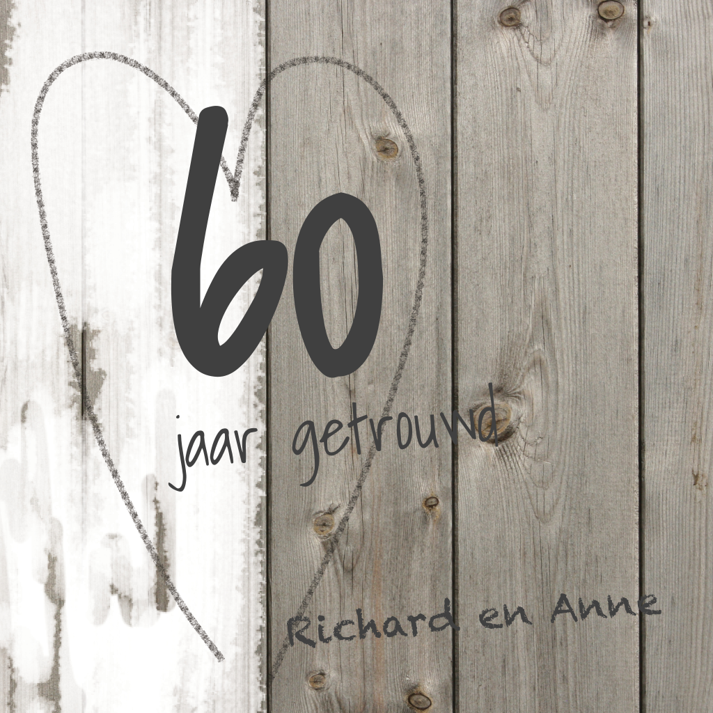 Uitnodiging wit geverfd hout en getekend hart 60 jaar huwelijk