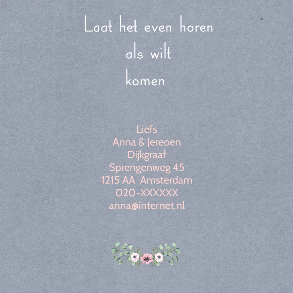 Uitnodiging voor een 60 jarig huwelijksjubileum met mooie anemoon en eucalyptus takken op blauwe craft. (6609)