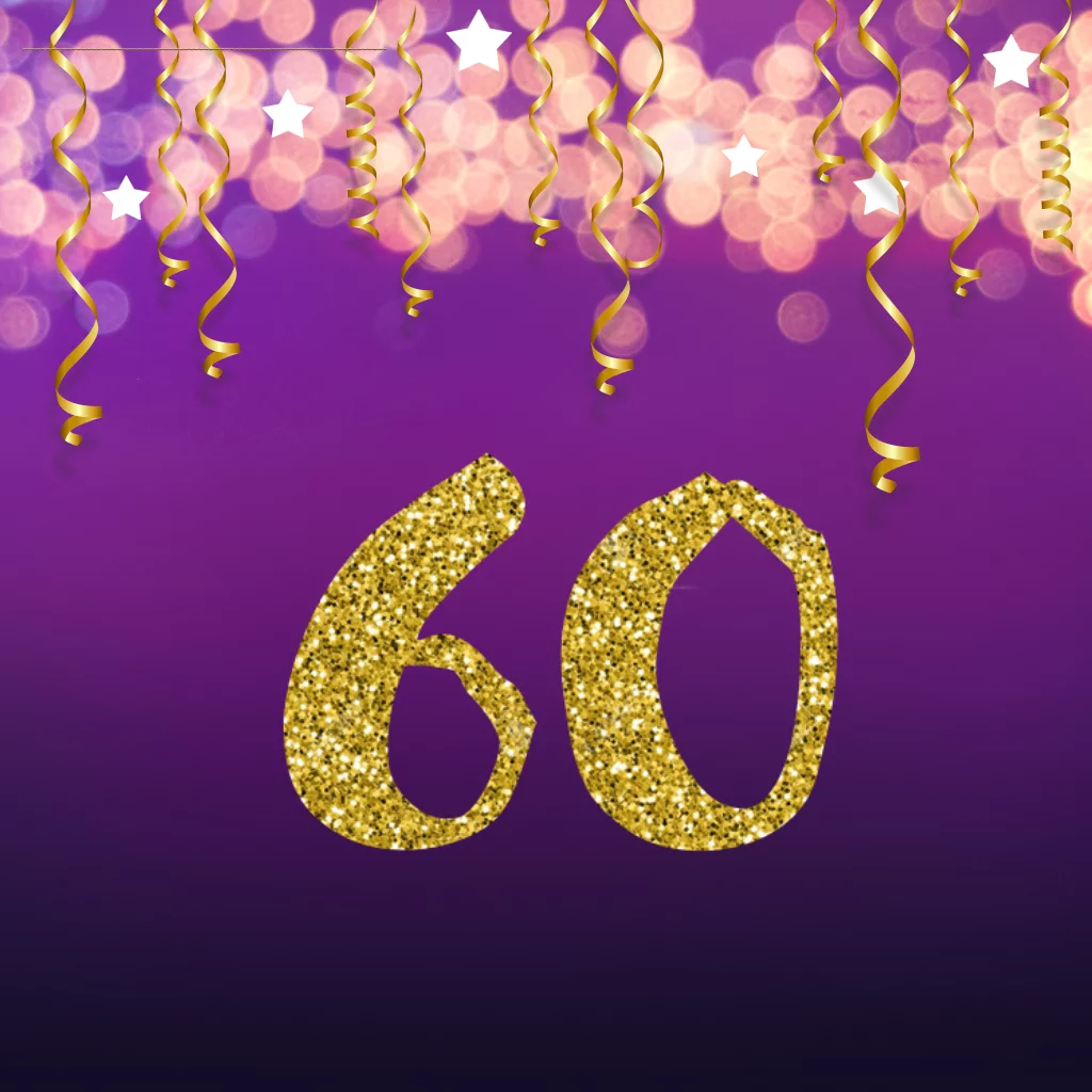 Moderne uitnodiging 60 jarig jubileum paars met slingers