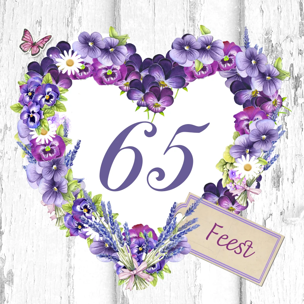 65-jaar-uitnodiging feest met paarse bloemetjes