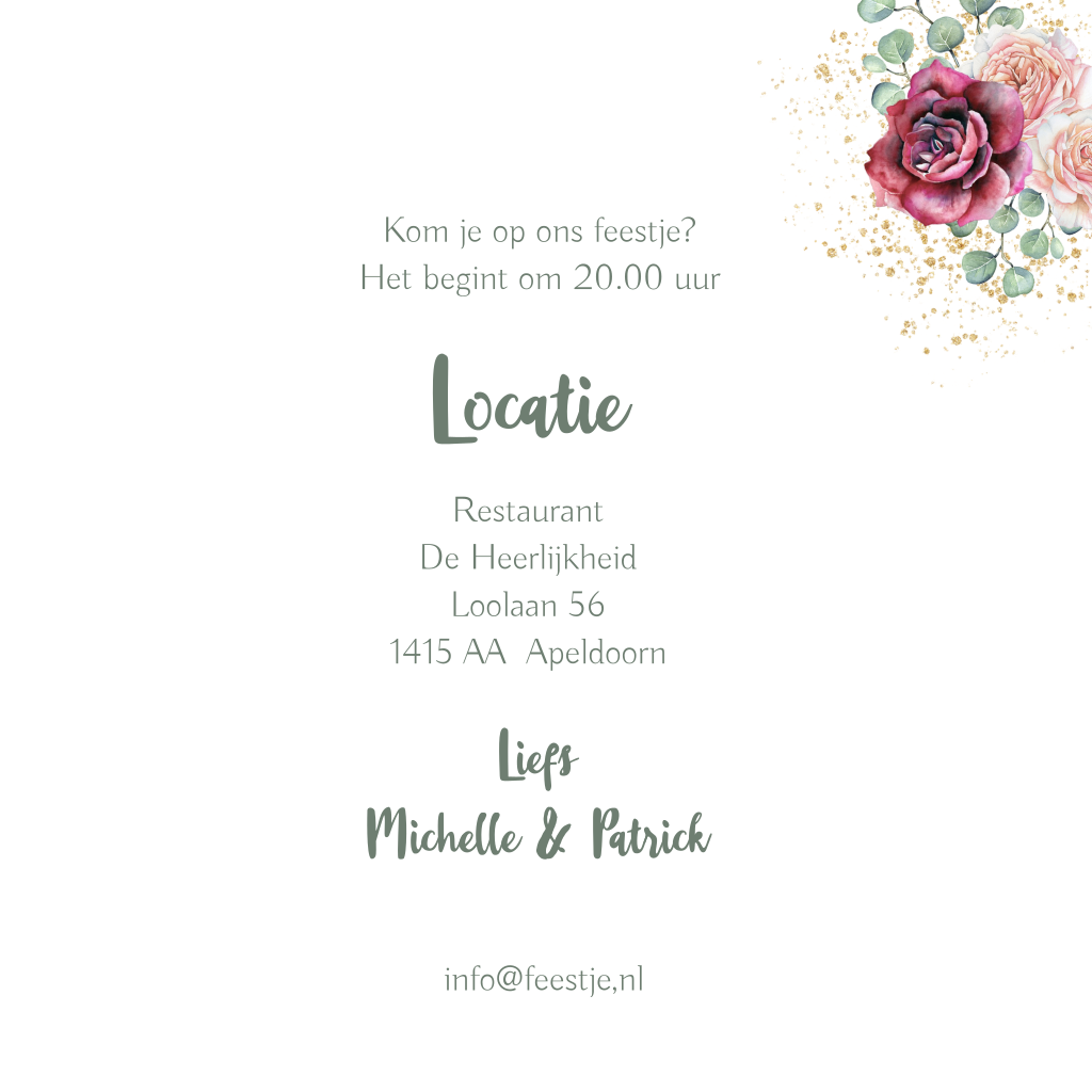 Uitnodiging voor een huwelijksjubileum botanische rozen in aquarel. (10157)