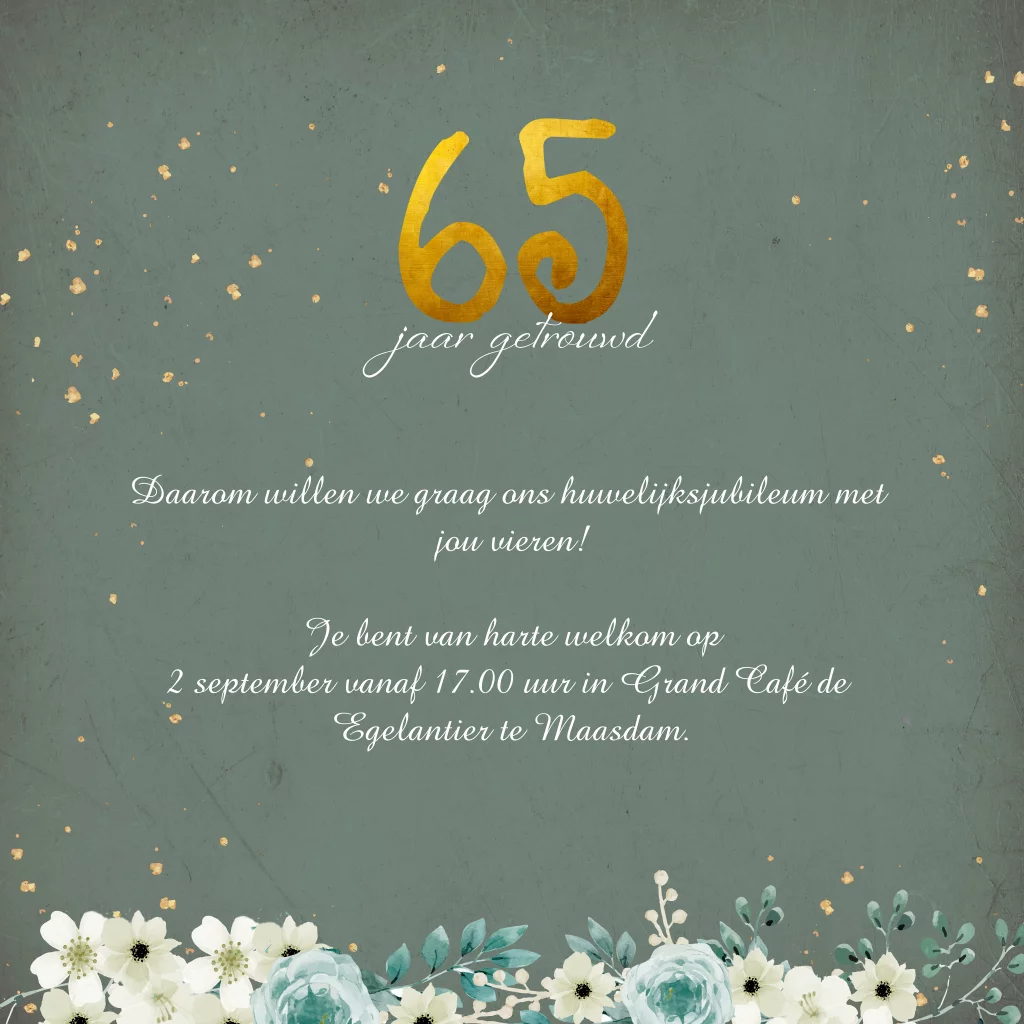 Jubileum uitnodiging 65 jaar getrouwd goud look
