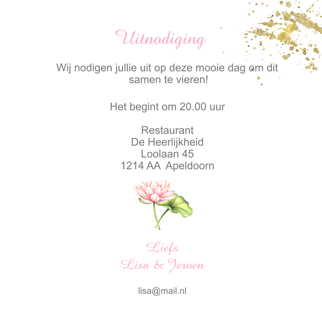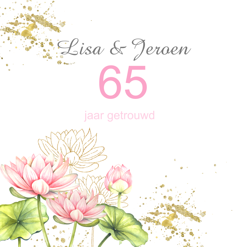 Uitnodiging 65 jarig huwelijksjubileum lotus aquarel