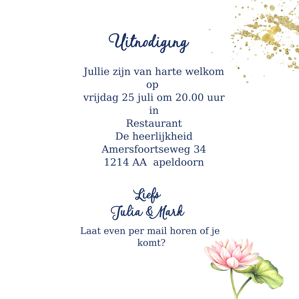 Uitnodiging 65 jarig huwelijksjubileum lotusbloemen