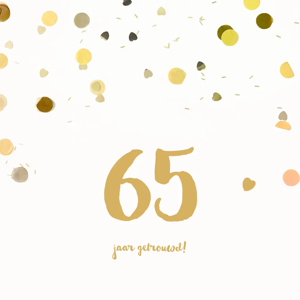 Uitnodiging 65 jarig jubileum met goudkleurige confetti met de tekst in goudkleur. (5064)
