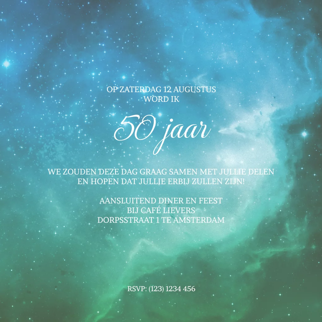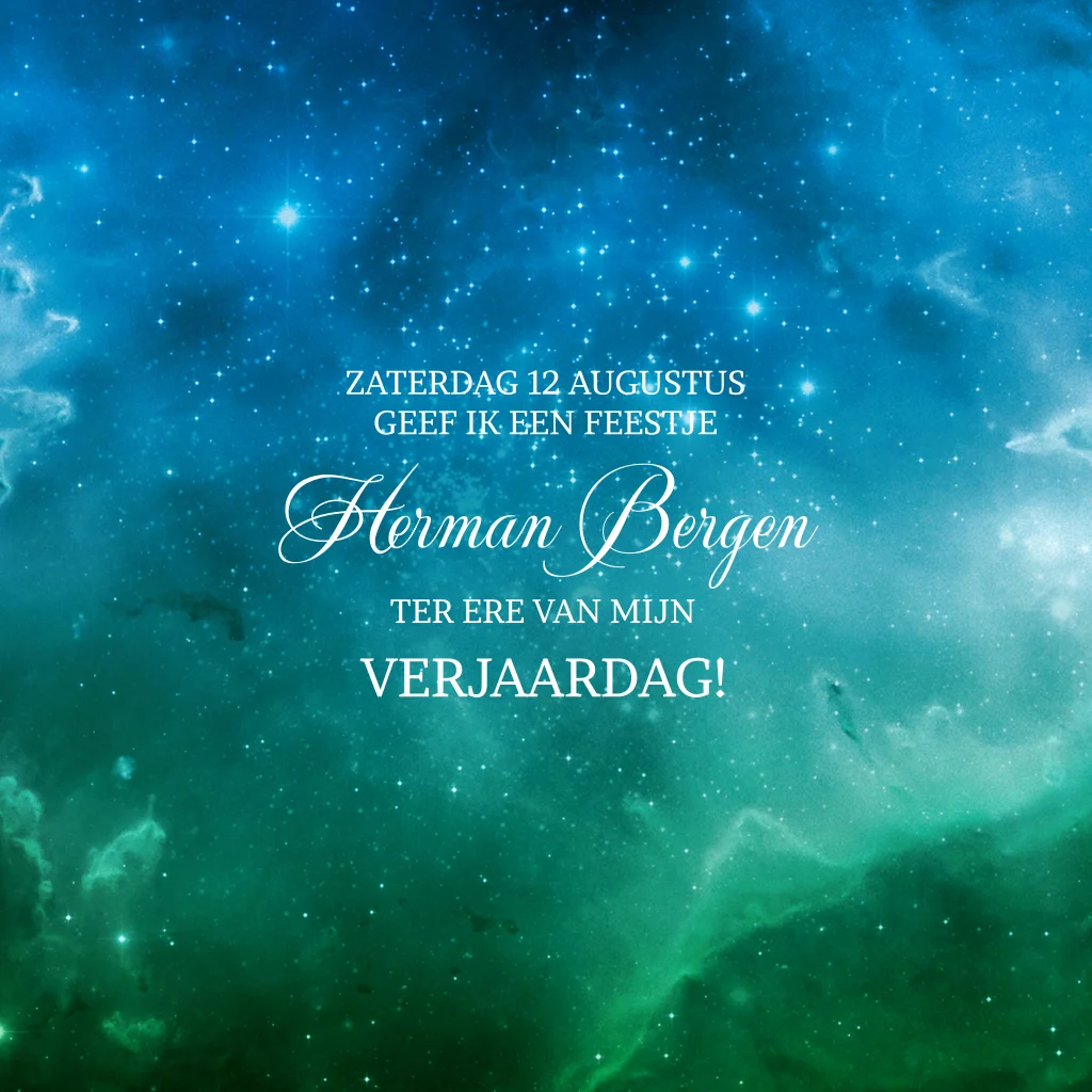 Donker groene zee blauwe galaxy uitnodiging 70e verjaardag