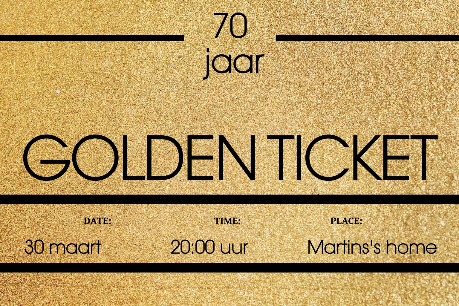 Grappige uitnodiging golden ticket voor een 70e verjaardagsfeest