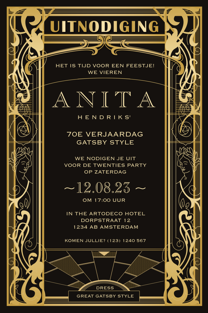 Great Gatsby verjaardagsuitnodiging Art Deco stijl