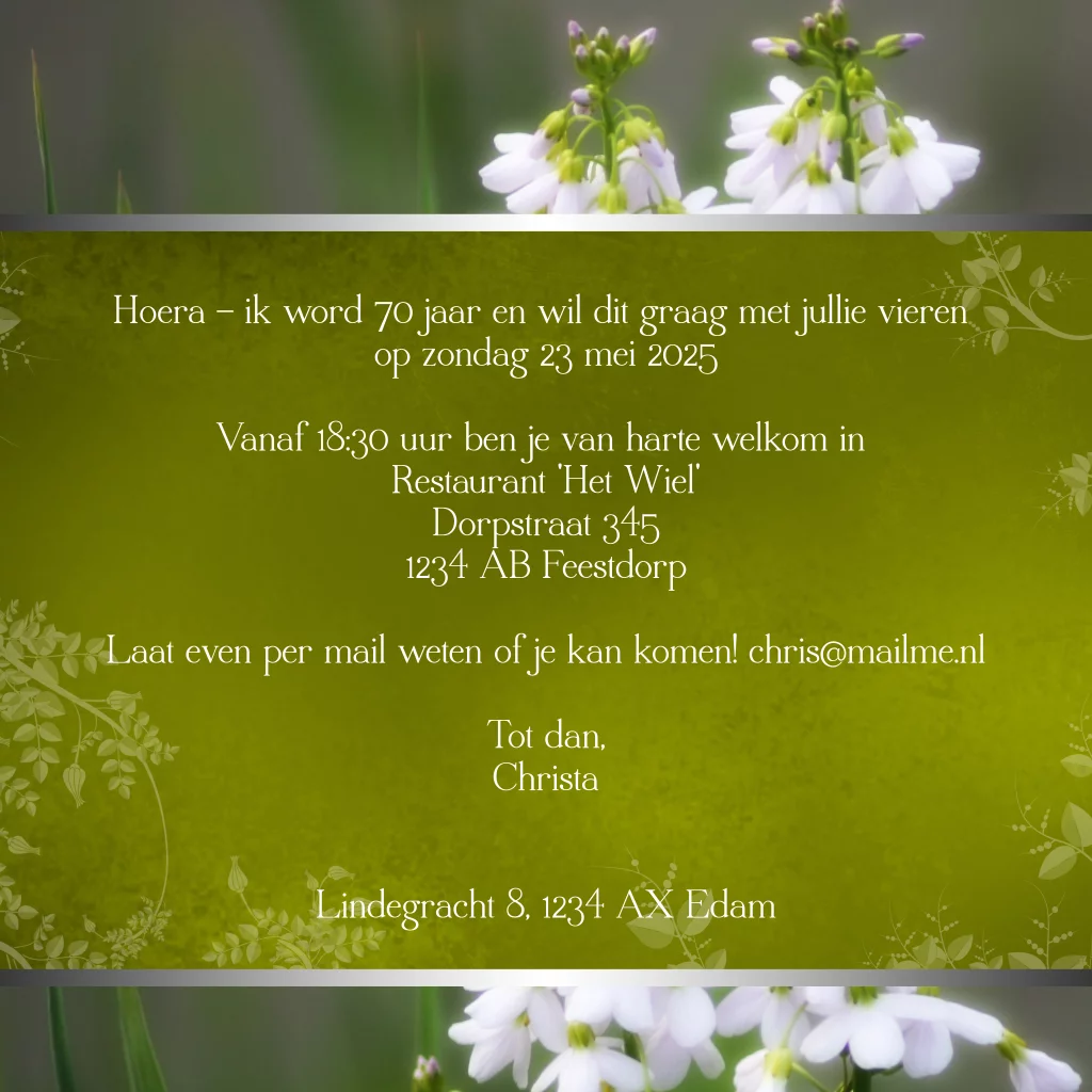 Groen kaart 70e verjaardag uitnodiging feestje. Met foto. (1401)