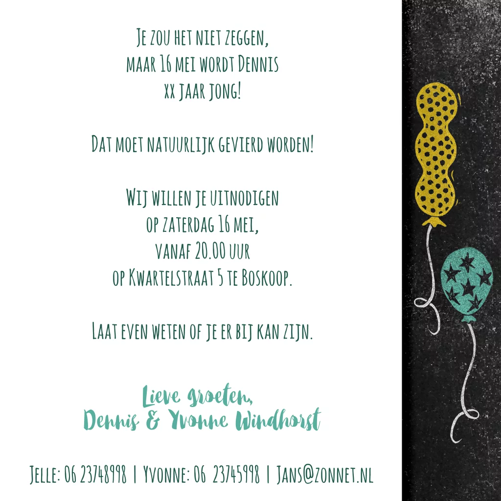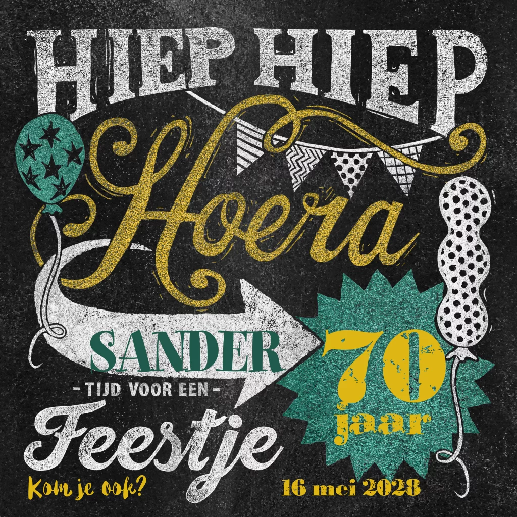Uitnodiging 70 jaar verjaardag met een krijtbord met stempel vormgeving. (7067)