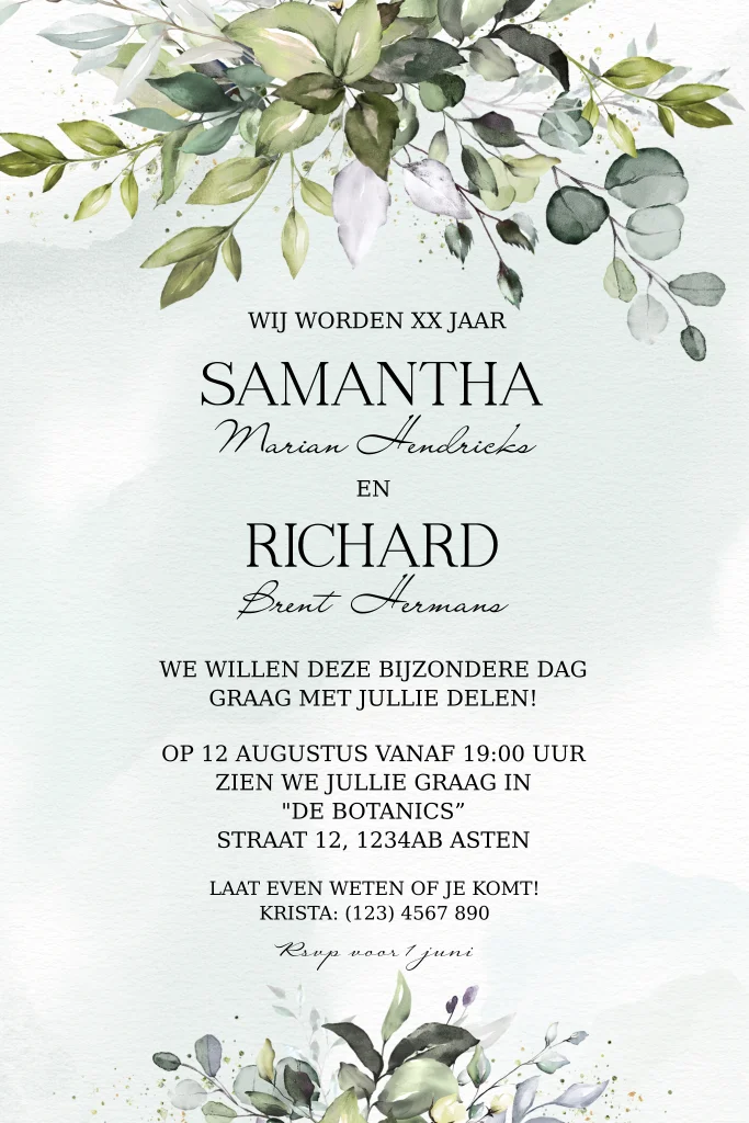 Uitnodigingskaarten verjaardag 70 herbs and leaves pastel groen