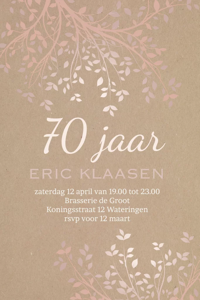 Verjaardagsuitnodiging 70 jaar koper tinten bladeren