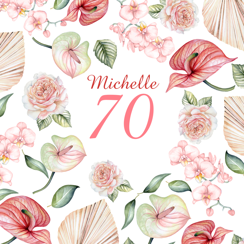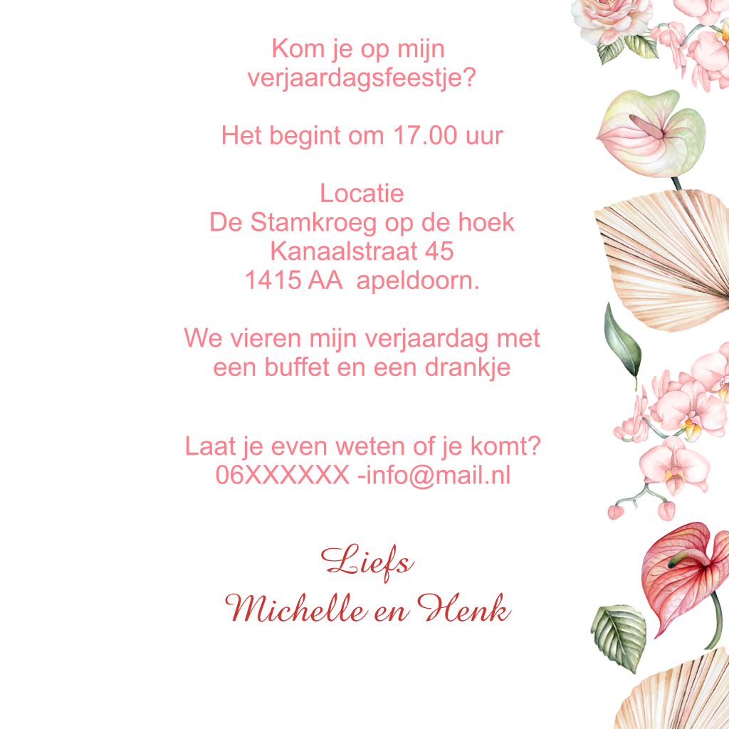 Verjaardagsfeestje uitnodiging met mooie bloemen in koraalrood en roze aquarel. (20846)