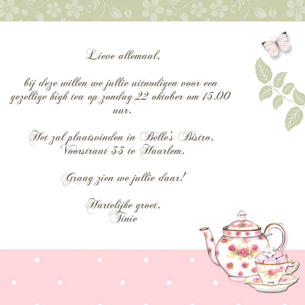 Uitnodiging 80ste verjaardag high tea feest vrouwen