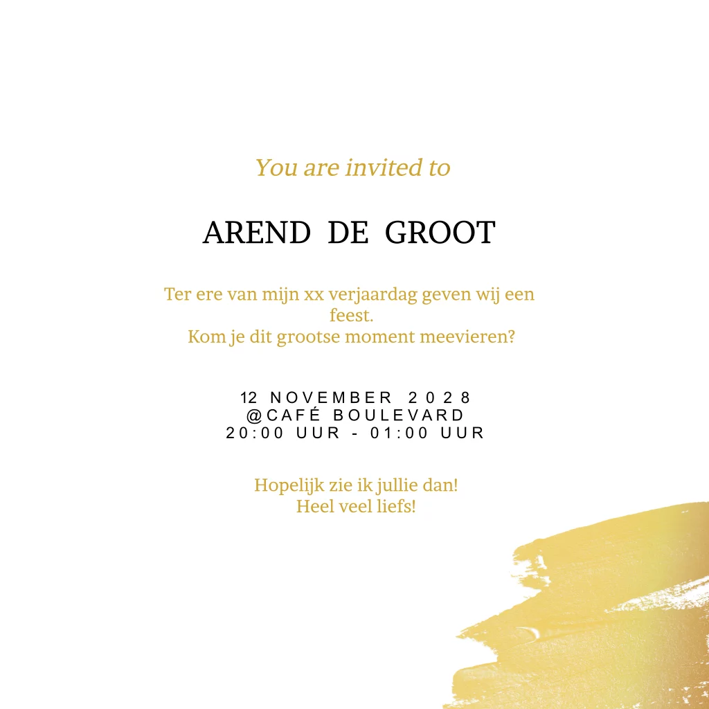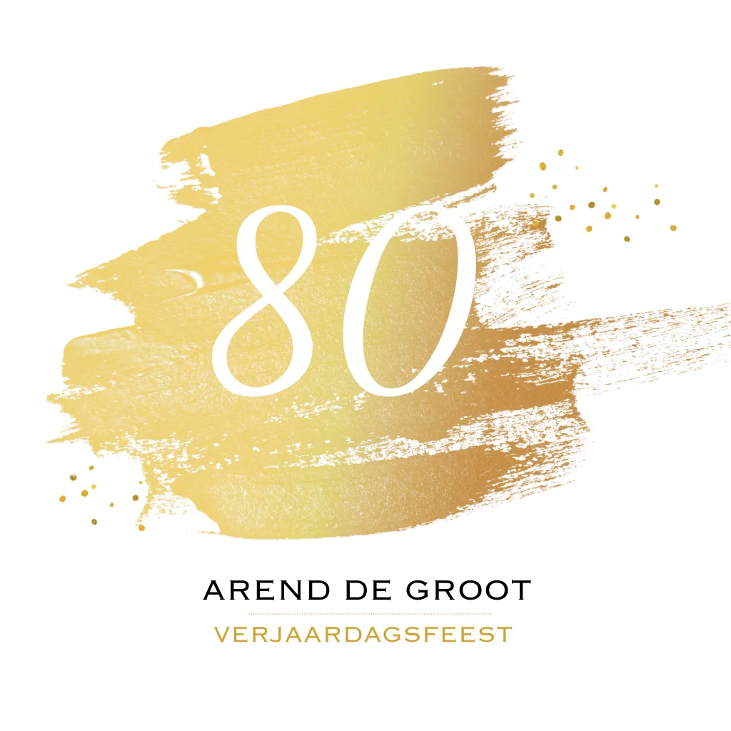 80 jaar verjaardag uitnodiging goudkleurige tinten confetti met waterverf streep. (7455)