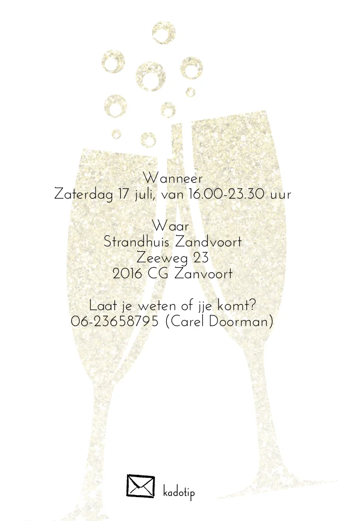 Uitnodiging verjaardag met champagne glazen. (7202)