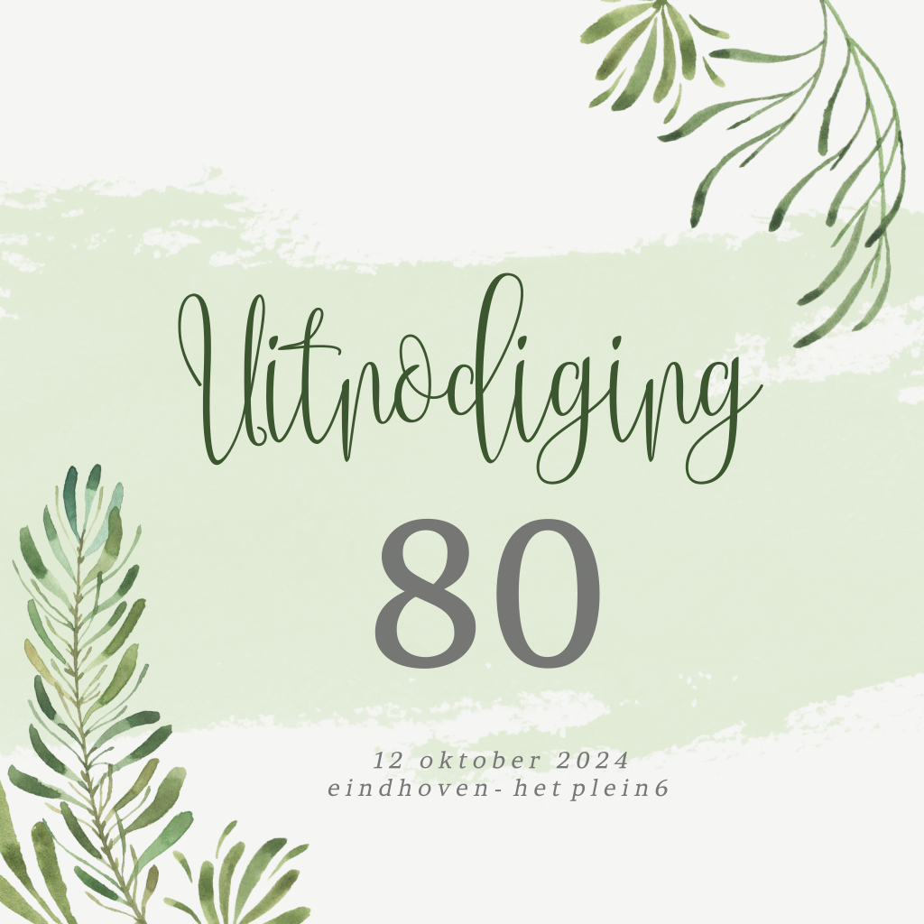Chique trendy verjaardagsuitnodiging 80 jaar met met takjes