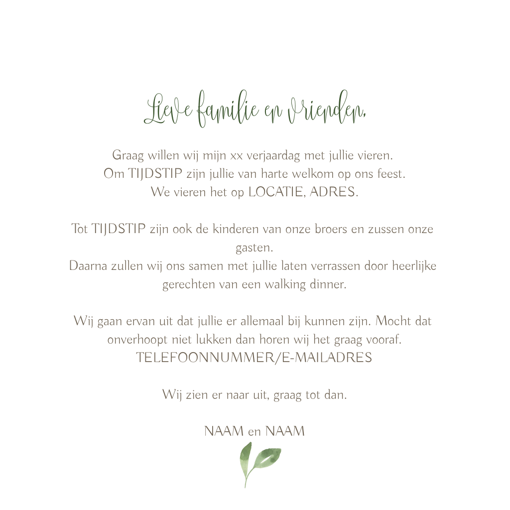 Chique trendy uitnodiging voor een verjaardag met waterverf met takjes. (7393)