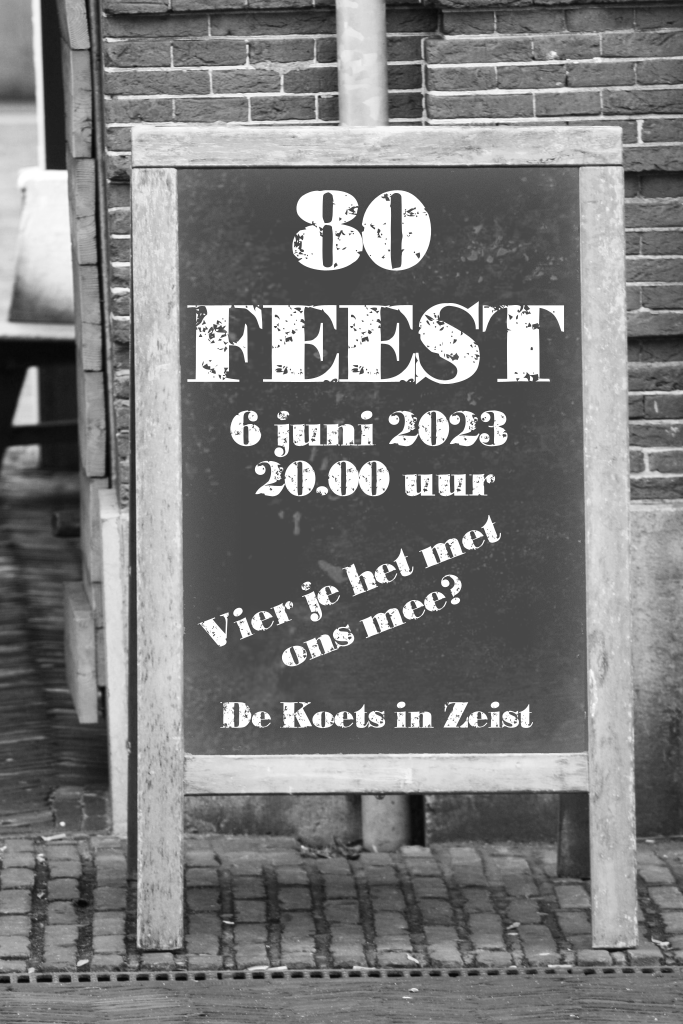 Originele uitnodiging tachtigste verjaardag geschreven op een krijtbord