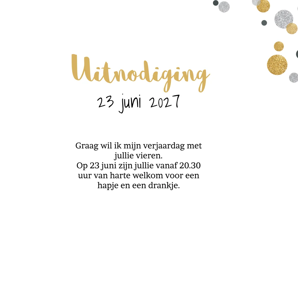 Uitnodiging 80 jaar dubbel met confetti in zilver en goudlook