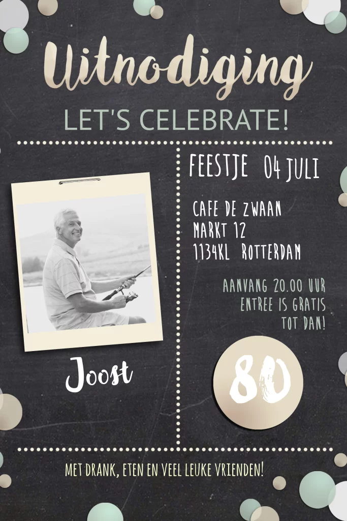 Uitnodiging 80 jaar verjaardag man met foto met confetti. (6087)
