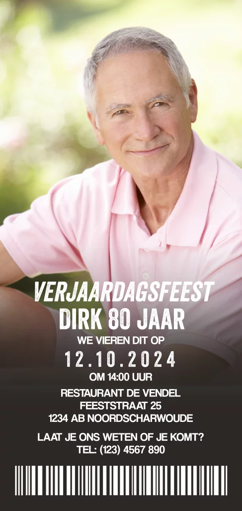 Uitnodiging ticket verjaardagfeest man 80 jaar