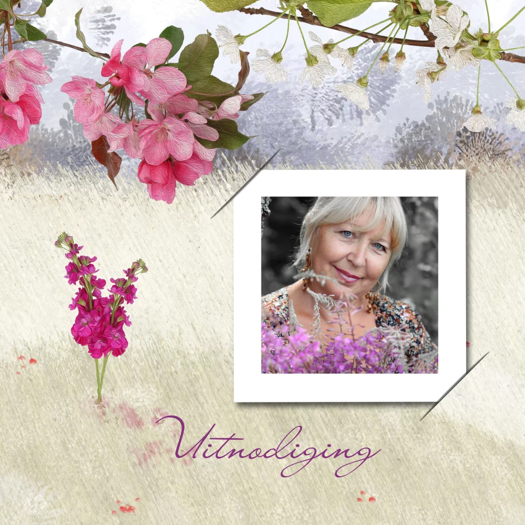 Uitnodiging met bloesems en ruimte voor een eigen foto. (7442)