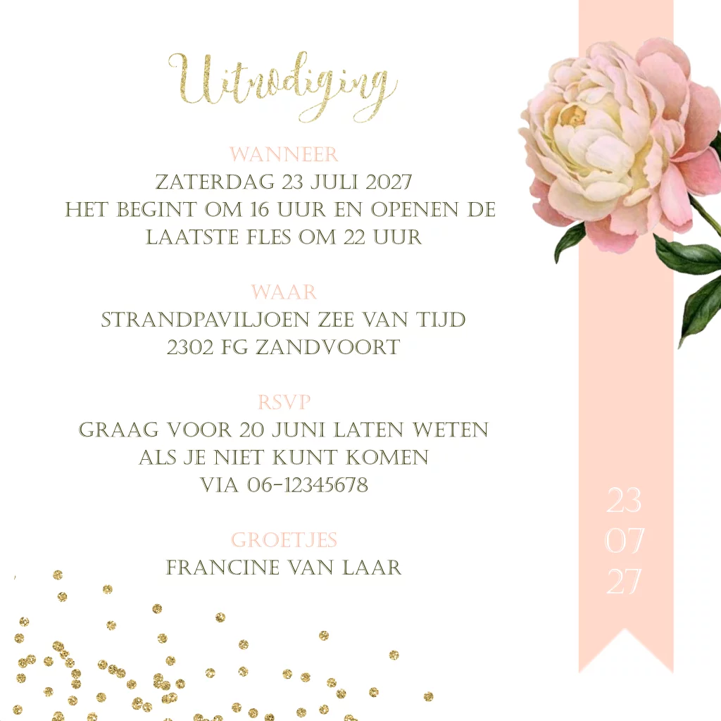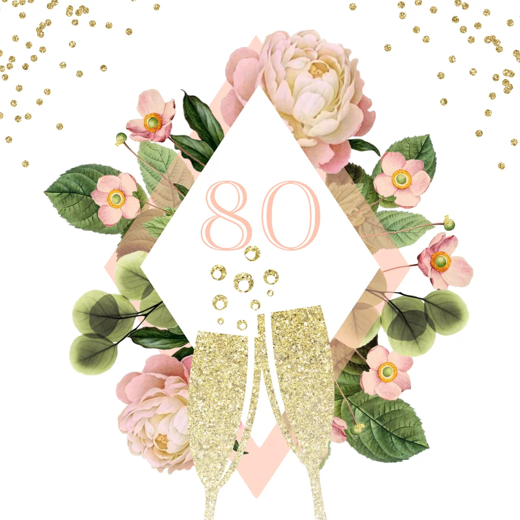 Uitnodiging verjaardag 80 jaar roze en goud