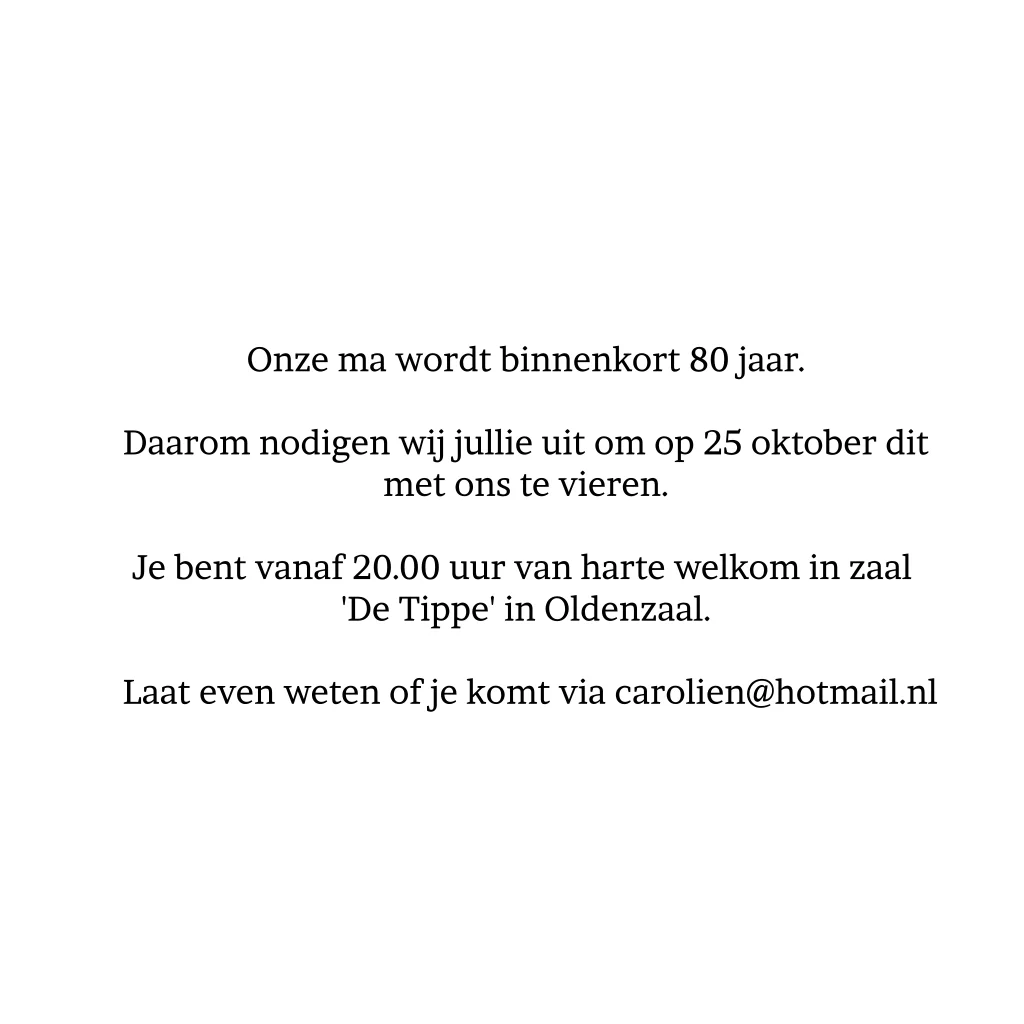 Uitnodigingskaart voor een 80 jarig bestaan van een bedrijf of een 80ste verjaardag.