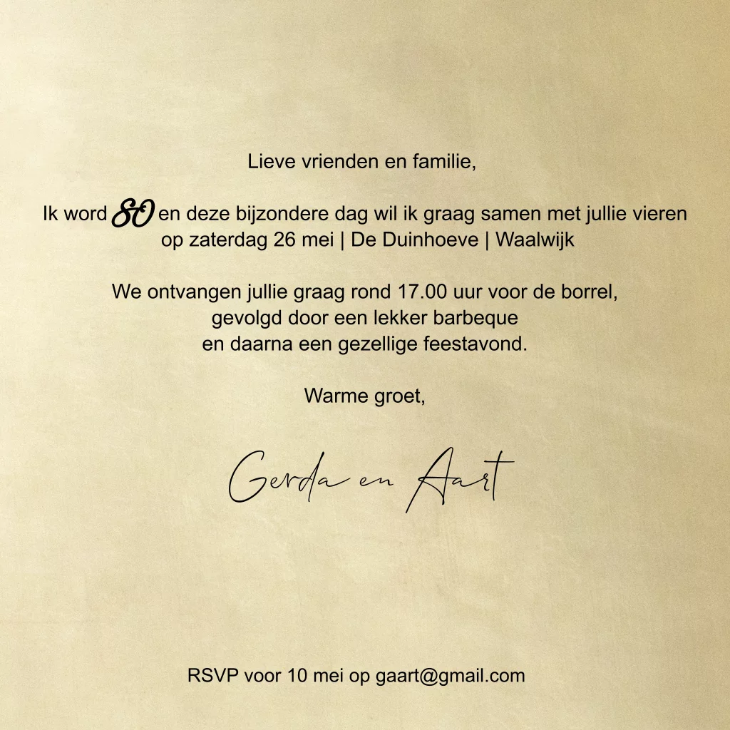 Uitnodiging verjaardag 80 jaar met bloemen en goudlook accenten