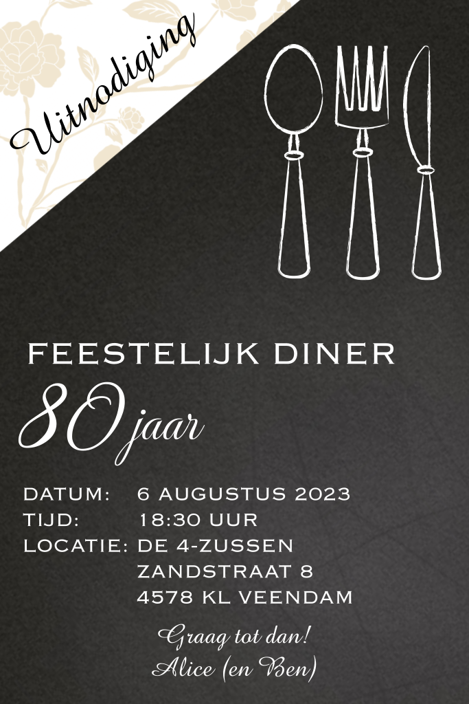 Uitnodigingskaart diner etentje 80 jaar verjaardag