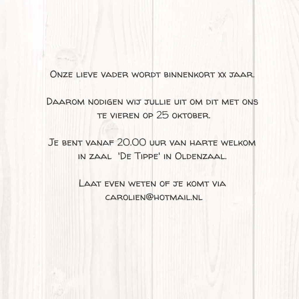 Uitnodigingskaart hout verjaardag 80 jaar voor een man