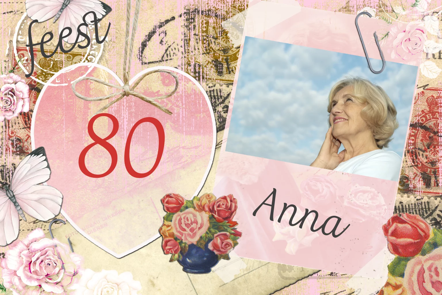 Uitnodigingskaart verjaardag vrouw 80 met rozen