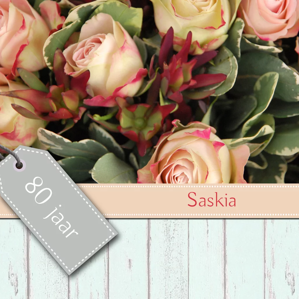 Verjaardag uitnodiging 80 jaar met zalm en bloemen