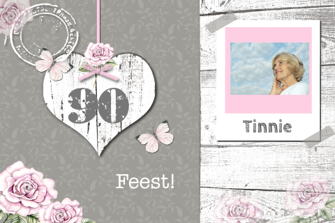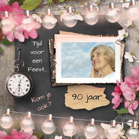 Mooie uitnodiging voor een negentigste verjaardag met bloemen