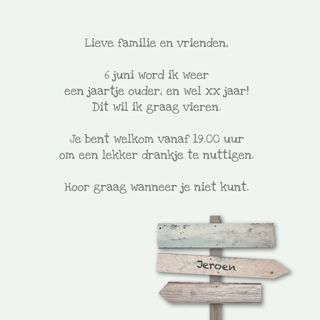 Uitnodiging 90e verjaardag met houten borden vierkant