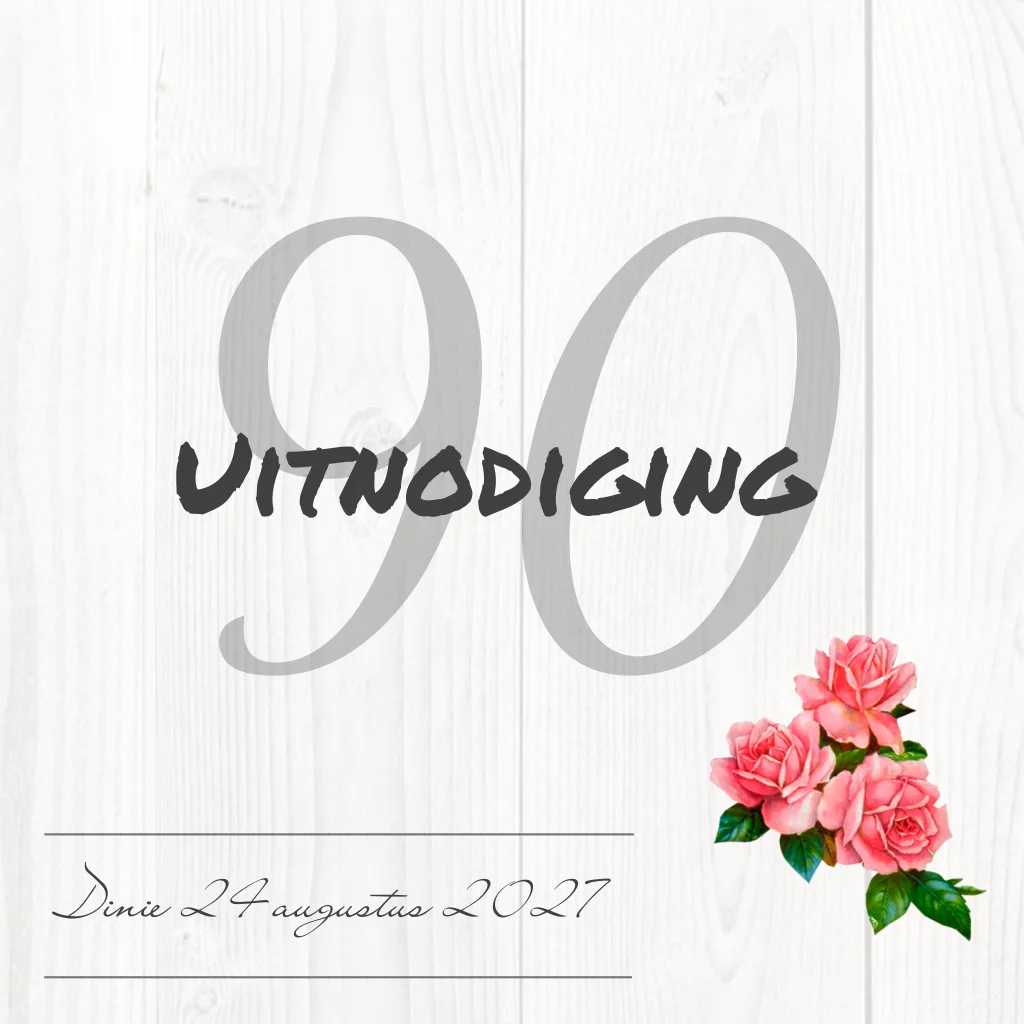 Uitnodiging vrouw 90 jaar met bloemen