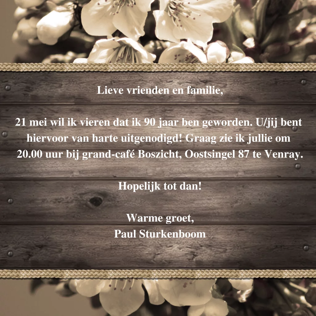 Verjaardagsuitnodiging voor 90e verjaardag hout en goud